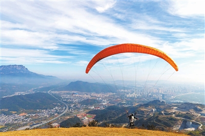 近日,庐山市白鹿镇,游客在庐山飞行乐园体验滑翔伞运动。庐山市抓住低空经济热点,打造国家滑翔伞航空营地,滑翔伞运动成为新兴旅游热点。