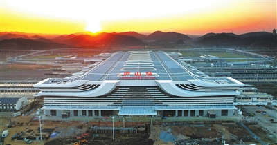 11月11日,夕阳映照下的九江高铁站庐山站东站房显得格外飘逸柔美。据了解,目前该项目建设已经完成97%,本月底可以基本完工亮相(外立面、内部装修建设完成),预计12月底将投入使用。庐山站全面投入运营后,到时年发送旅客可达800万人次,站房最高聚集人数可达2000人,货物吞吐3000万吨/年。 (本报记者 欧阳海员 摄)