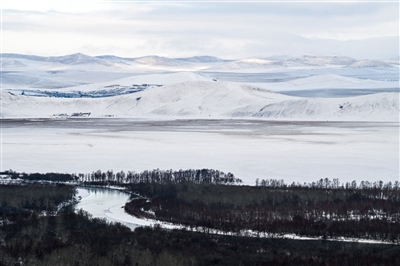 近日,位于内蒙古呼伦贝尔市的额尔古纳湿地迎来降雪。白雪覆盖下,河流蜿蜒流淌,景色如梦如幻。