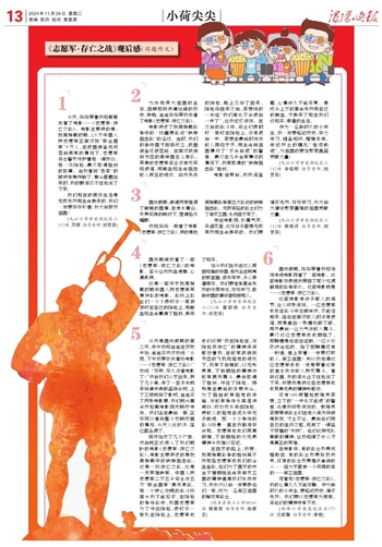 还有189师营地教导员李想,立下的“一步也不能退”的誓言,也是我印象深刻的。教导员李想带领战士们在炮火连天中顽强抵抗,寸土不让。最后他们用自己的血肉之躯,筑起了一道坚不可摧的“长城”。他们这种无私奉献的精神,让我知道了什么才是真正的英雄。