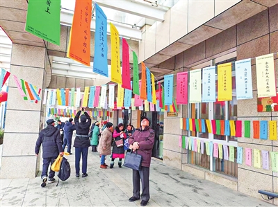 虽然天气阴冷,但前来参加活动的市民络绎不绝,有的单打独斗,有的相互讨论,没猜中的苦思冥想,猜中了的笑逐颜开。不多时,很多猜出灯谜的市民和灯谜爱好者都领到了小礼品。