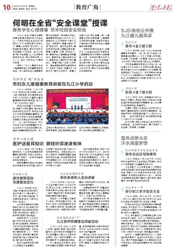 本报讯(余涛)校园安全是教育事业稳健发展的底线与生命线。为有效引导各地各校将“时时放心不下”的责任感切实转化为“事事心中有底”的行动力,江西省教育厅推出“局长书记校长安全课堂”系列活动。在2025年第2期“安全课堂”上,九江市教育局党委书记、局长何明受邀,以《从“心”出发 守护安全》为题进行授课。