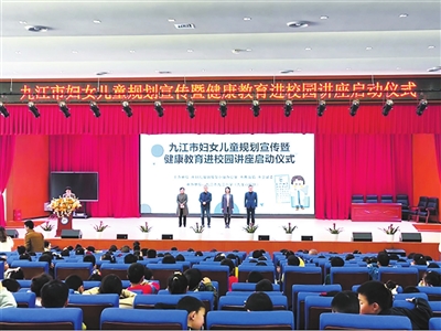 本报讯(刘燕清 文/摄)2月28日,由市妇儿规划领导小组办公室、市教育局、市卫健委联合主办的“九江市妇女儿童规划宣传暨健康教育进校园讲座”在九江小学(九龙山校区)启动。