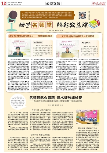 为指导学生高效学习,助推全市优质教育资源共享,充分发挥名师的示范引领作用,2025年3月15日~16日,瑞昌市第四中学胡字龙老师、瑞昌市第八中学黄开田老师受邀做客浔阳晚报幽兰名师公益直播间,分别为初三学子带来物理、数学两节专题复习课。两位老师精彩的课堂吸引了1.5万人次进行云端学习。