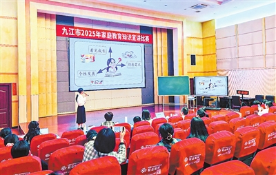 本报讯(费颖 文/摄)4月24日至25日,由九江市教育科学研究所统筹指导的“科学育儿,智慧陪伴”家庭教育知识宣讲大赛在鹤湖学校举行。市教科所党支部书记、所长胥明辉,九江经开区社会发展局党委委员、九江市鹤湖学校党总支书记代仁良,鹤湖学校校长易本猛,市教科所心理健康教研员、张放心理健康名师工作室主持人张放等参加活动,全市教育系统百余名工作者现场观摩。