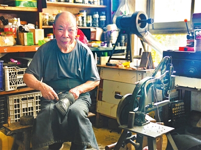修鞋行业的兴衰变迁,在芦选旺眼中留下深刻印记。早些年,他的摊位前总是排着长队,“那时候生意好,回头客特别多。”然而随着快消时代来临,越来越多人选择弃旧买新,修鞋摊也渐渐失去往日的热闹。同行们纷纷转行,附近曾经十多家修鞋摊如今只剩他一人坚守。