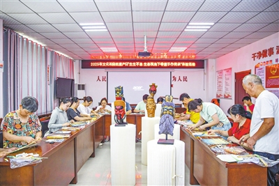 近日,江西生态文明展示馆工作人员走进共青城市茶山街道东湖社区,开展2025年文化和自然遗产日“生生不息 生态视角下非遗手作传承”体验活动。活动现场,工作人员化身非遗文化传播使者,指导居民制作竹编扇与漆扇,还带来了极具特色的傩面具和根雕展示,让居民们大开眼界,赞叹不已。(潘成 本报记者 刘家 摄)