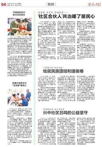 本报讯(记者 张新红 文/摄)近日,一场别开生面的竹编技能培训课在湖滨社区党员活动中心开课,20名宝妈现场学习竹编技能、了解竹编文化,感受非物质文化遗产的独特魅力。