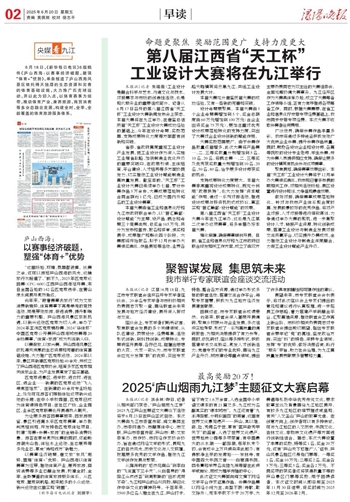 本报讯(记者 洪永林)昨日,记者从相关部门获悉,“庐山烟雨九江梦”2025九江庐山主题征文大赛线下活动将于6月23日在庐山正式启动。本次大赛由九江市委宣传部、阅文集团主办,市委网信办、市融媒体中心、市文联、庐山市委宣传部、庐山市(局)文旅委承办,市作协、市网络作家协会协办,旨在通过网络文学的形式,展现九江的自然风光、历史文化与人文底蕴,挖掘更多优秀的文学作品,推动九江文学创作发展与繁荣。