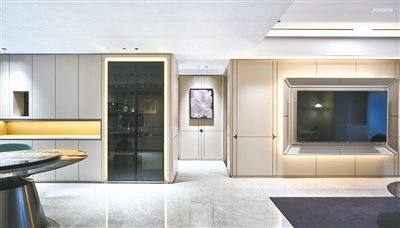 本案为意式极简风格,将空间中的静态力量凝练,激活感官的材料和纹理,构建空间可衍生的序列,让空间与所处之人的气度相匹配。