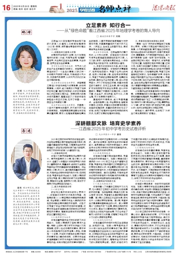 江西省2025年地理学考卷体现了新时代的育人价值和义务教育地理课标(2022年)思想,凝聚着命题者的学科理念和人文关怀。