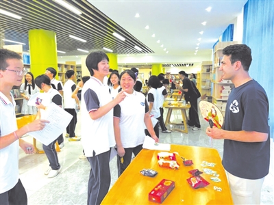 交流活动采用“圆桌对话+文化体验”的模式。中外学生与教师围坐十余张圆桌,在双语交织中展开交流。首日活动在中外学生合唱的串烧歌曲中拉开帷幕。一段展现中华传统文化瑰宝与现代发展的视频,为中外学生提供了生动的文化导览。首轮“圆桌交流”聚焦中华文化主题。“向外国朋友介绍春节、书法时,看到他们欣赏的眼神,我更加深切地感受到文化自豪。听他们讲述异国文化和故事,也让我领略了世界多样性之美,激发了我学好英语来传播中国传统文化的动力。”九江实验中学初二学生李文分享自己参加活动的收获时说。
