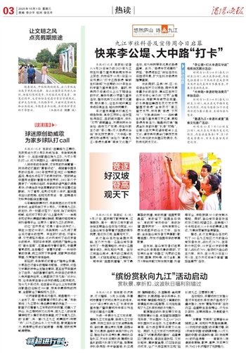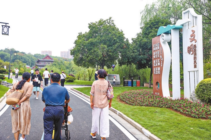 随着国庆、中秋假期的到来,出门赏秋成为很多市民的选择。南山公园景区内游人如织,游客们悠闲漫步,不时驻足欣赏美景。游览过程中,大家纷纷自觉遵守景区管理规定,爱护生态环境,不践踏草坪、不破坏花草树木和公共设施,不随意丢弃垃圾,共同维护景区的干净整洁。 (本报记者 刘家 摄)