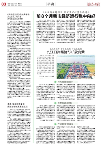 本报讯(记者 沈明杰)日前,记者从市统计局获悉,1~8月,我市工业运行保持稳定,固定资产投资平稳增长,消费市场扩容提质,居民消费价格总体稳定,全市经济运行总体保持稳中向好的良好态势。