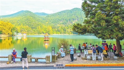 10月14日,庐山风景区内云海升腾、层林尽染,为游客展现最迷人的风景。(韩俊烜 摄)