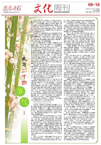 春分,太阳从黄经0°出发,秋分,太阳到达黄经180°,到了惊蛰,黄经345°,再往前迈一步,就是终点,同时它也是新的起点。书写二十四节气,就是书写时间轴上的二十四个坐标。在它的秩序轴上,我获得了一种从未有过的心安,一种如家的归属感也油然而生。我的母亲不识字,她说起立春、立秋、白露、寒露,就像说着自家的闺女和伢崽;我的村人也大多不识字,他们谈论的话题总也离不开清明、谷雨、小寒、大寒。二十四节气,是他们的母乳和奶水,二十四节气同样也滋养着我,让我茁壮、阳光。我是个被光照拂,有地气的孩子,书写,让我的双脚又回到了土地之上。