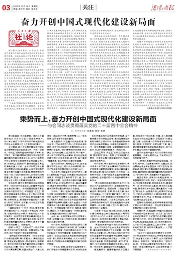 “十五五”时期是基本实现社会主义现代化夯实基础、全面发力的关键时期。全会通过的《建议》,准确把握“十五五”时期党和国家事业发展所处历史方位,深入分析我国发展环境面临的深刻复杂变化,对未来5年发展作出顶层设计和战略擘画。《建议》坚持目标导向和问题导向,坚持系统思维,坚持进一步全面深化改革,坚持扩大对外开放,指导方针科学精准,主要目标清晰明确,任务举措求真务实。这是乘势而上、接续推进中国式现代化建设的又一次总动员、总部署,体现了以习近平同志为核心的党中央团结带领全党全国各族人民续写经济快速发展和社会长期稳定两大奇迹新篇章、奋力开创中国式现代化建设新局面的历史主动,必将对党和国家事业发展产生重大而深远的影响。