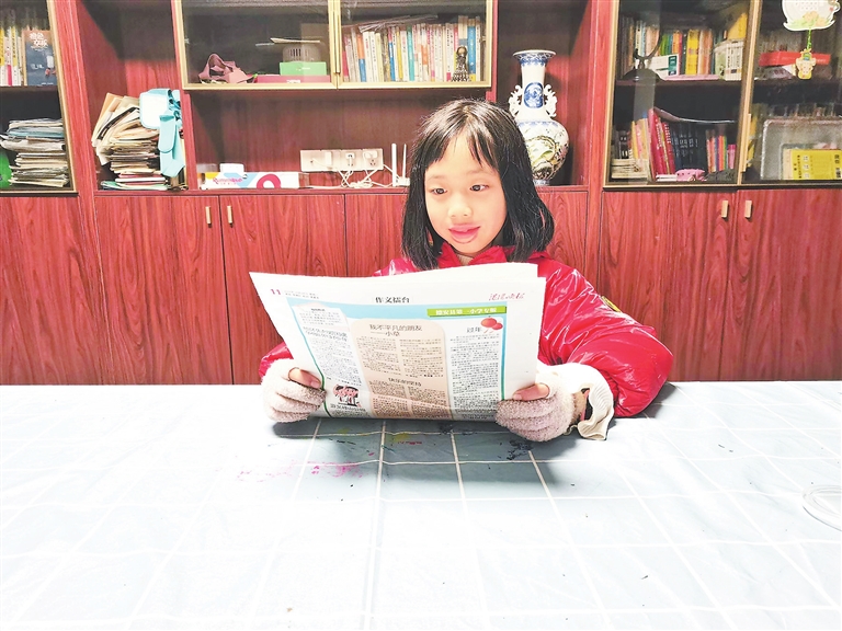 黄新越在阅读中也会注意对好词好句的积累,好的作品,她也会把它保存下来。在父母的引导以及好作品的熏陶下,黄新越也逐渐有了想在晚报上刊发自己作品的想法。“我们也会引导她,通过平时的小练笔、小作文让她试着写一些,帮助她修改,和老师一起,帮助她把稿子投出去。”黄新越的爸爸告诉记者,黄新越投稿了不少作品:“稿费有好几个5块。”同时,由于报纸便于保存的特点,黄新越总会在自己的作品发表以后,把自己的作品做成剪报,放在自己的资料盒里好好保存起来。她说,以后自己还会继续和爸爸妈妈一起看晚报,也会继续给晚报投稿。她的资料盒也一定会越来越丰富。