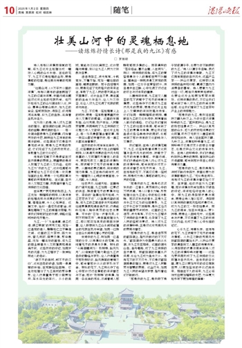 练炼的笔触不只是停留在对自然美景的赞美上,更重要的是深入挖掘了九江的人文内涵。他称九江为“我的九江”,这份归属感与自豪感让九江不仅仅是一片风景如画的土地,更是一个充满故事与情感的灵魂栖息地。在这里,自然与人文相互交融,共同编织着九江独特的文化图谱。