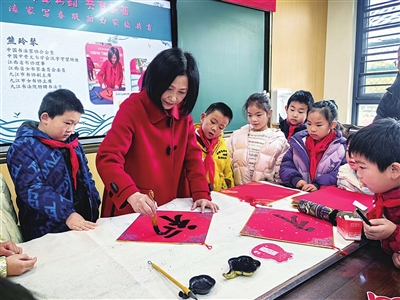 此次活动特邀中国书法家协会会员熊玲琴、江西省书协会员廖琦两位老师,传授软笔书法精髓,并现场书写新春对联送祝福。九江小学书法教研组长欧阳毅萌和书法老师姜炜也分享了硬笔书写技巧,教科研主任陈巨东带来书本阅读课程分享。