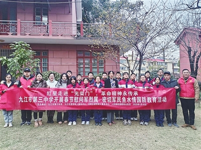 本报讯(白吏青 文/摄)1月10日,九江市第三中学“红星班”的学生代表在老师的带领下前往九江市干休所,慰问军烈属莫奶奶,传递新春祝福,传承红色基因。