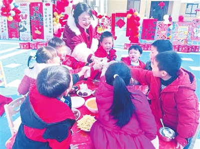 本报讯(赵玉梅 文/摄)1月13日,九江经开区七里湖中心幼儿园以一场“寻年味·吃大席”活动,为本学期画上句号。