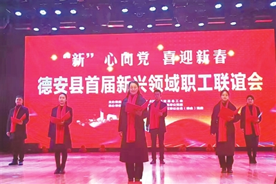本报讯(钟源 文/摄)1月24日下午,德安县委社会工作部、德安县总工会举办全县首届新兴领域职工联谊会。此次联谊会通过多样态的节目形式和多角度的节目呈现,展现出了新兴领域职工、群众奋发有为的精神风貌。现场还为6位优秀网约配送员、优秀货车司机颁奖,进一步提升广大新就业群体的职业归属感和荣誉感,为推动德安县社会工作高质量发展贡献更多新兴领域力量。