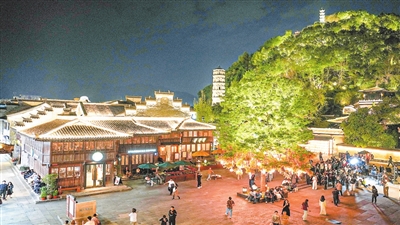 浙江省临海市台州府城文化旅游区总面积3.12平方公里,是浙江省保存较为完好的文化古城之一。入夜后,众多市民游客前往台州府城文化旅游区,感受古城文化韵味与人间烟火味的交融。 (新华社记者 郑焕松 摄)