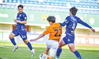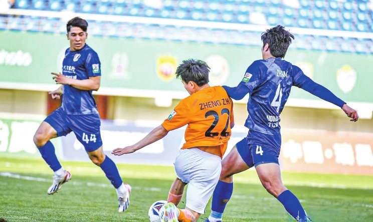 4月13日下午,2025中乙联赛第五轮展开争夺,江西庐山队坐镇主场迎战北京理工。经过90分钟激战,双方1比1握手言和。(谢耀辉 摄)