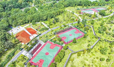 近日,位于八里湖新区的九龙山公园提升改造项目正在进行紧张的收尾施工,即将亮相。该项目规划在原有道路基础上新增一条长1.5公里、宽1.5米夜光塑胶跑道,将原有气排球场改造为匹克球场,原有硬质广场改造为儿童游乐活动场地,并将原室外篮球场、网球场、老旧设施等进行升级改造,同时增加科普教育、体育文化和智能互动等内容。(本报记者 刘家 摄)