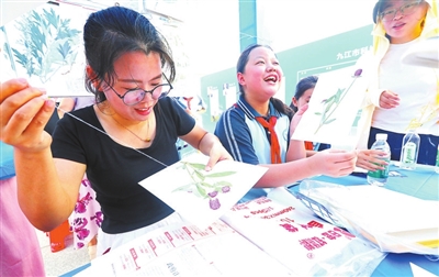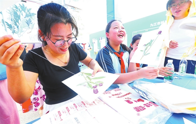 在美好生活展示体验区,九江森林植物标本馆带来了60多份植物标本,孩子们在老师的指导下,自己动手制作植物标本,感受大自然的神奇。该馆副馆长张丽萍说:“希望通过开展植物科普活动,让更多的人了解我们身边的植物。”