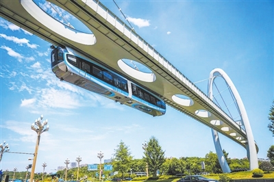 光谷空轨就像一条长长的钢铁巨龙,“挂”在空中,稳稳地吊在轨道下面行驶。它有着圆润流畅的车头,就像被精心打磨过的水滴,能减少在空气中前进的阻力。乘客坐在里面就像小鸟一样,能透过大大的车窗,把地面的景色看个清清楚楚,郁郁葱葱的大树、热闹的街道,还有来来往往的车辆行人。而且呀,光谷空轨还特别环保。不用烧汽油,不会发出噪音打扰我们的生活,靠电力就能欢快地奔跑,也不占地面的道路,这样马路上就不会那么堵啦。
